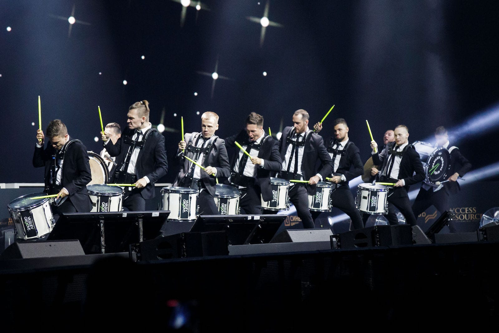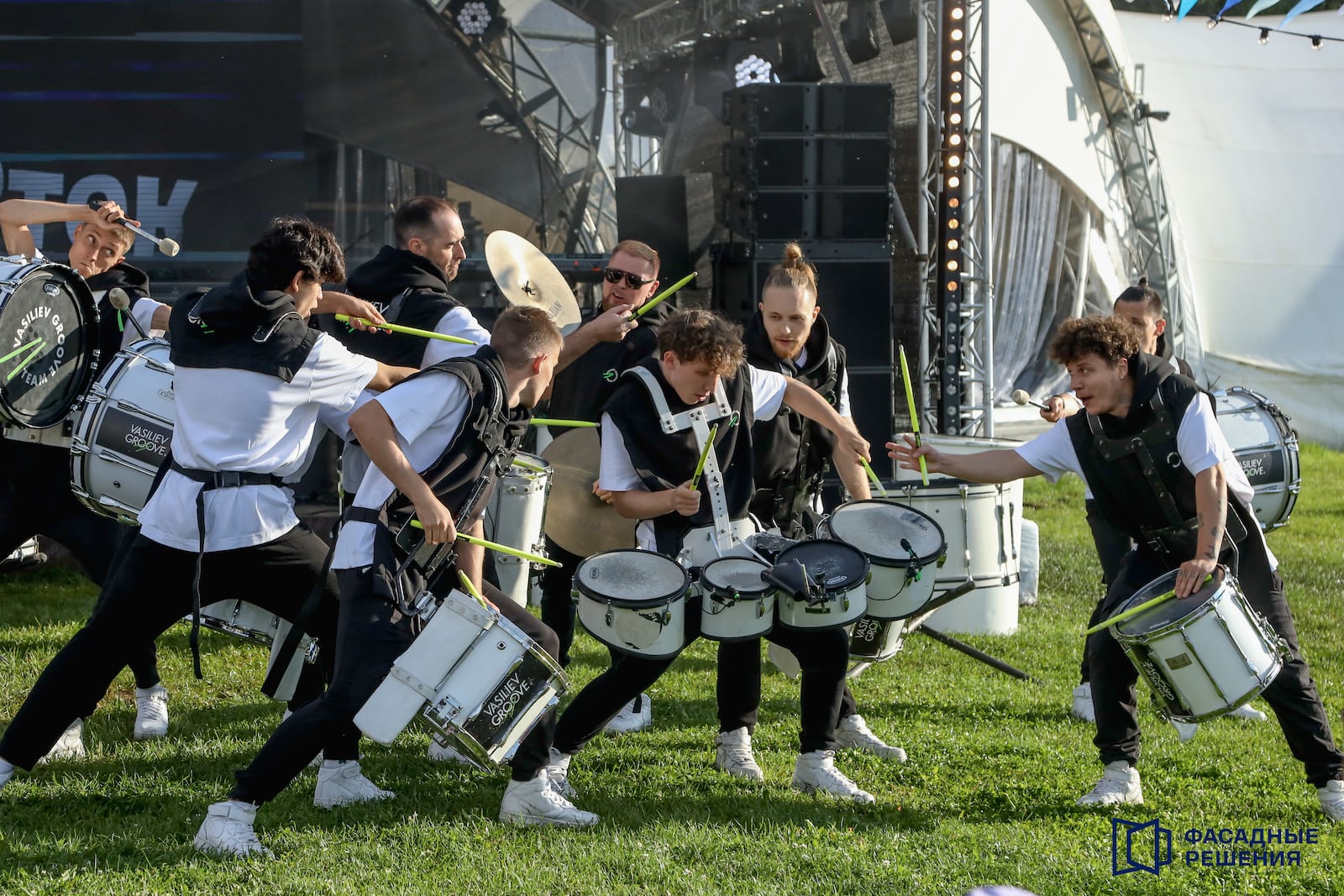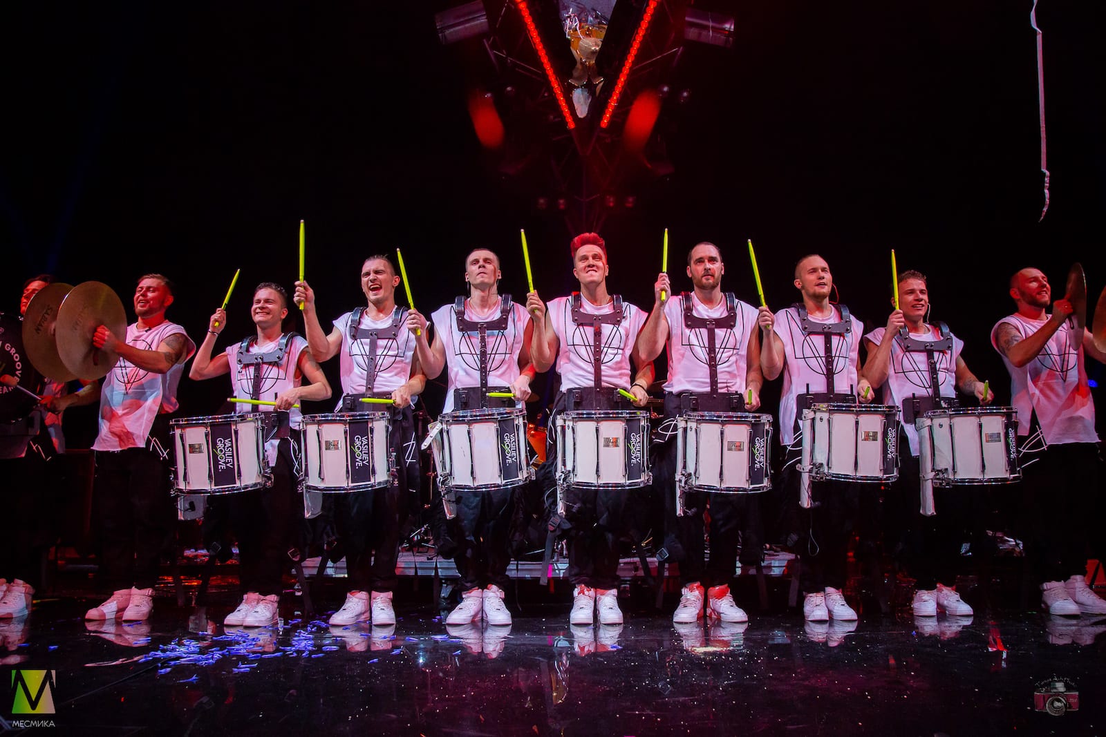 Номера исполняются шоу-оркестром совместно с барабанщиками.